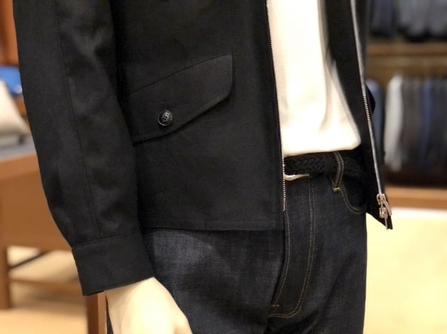 スラント(斜め)のフラップ付ポケットは、シンプルかつ機能的で、英国ブランドらしい機能美を兼ね備えます。