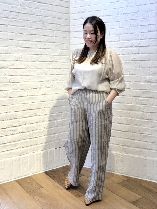 パンツを合わせたレイヤードスタイルも楽しめます◎