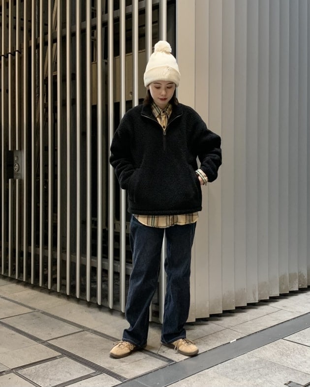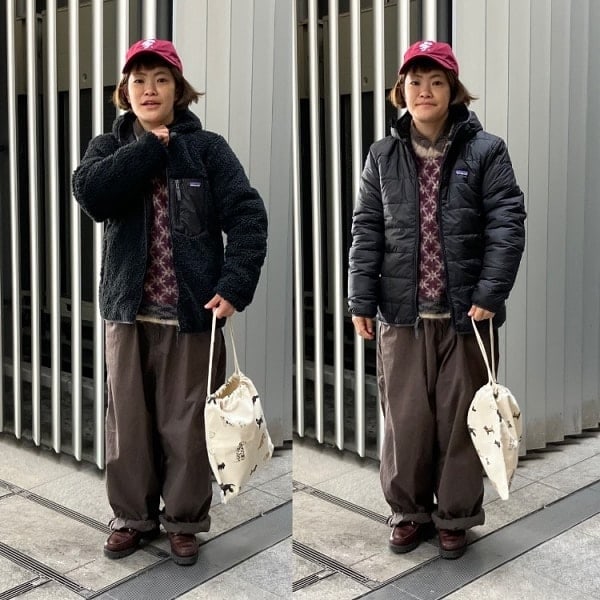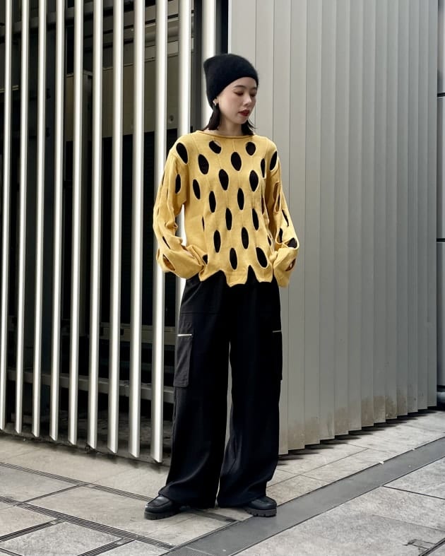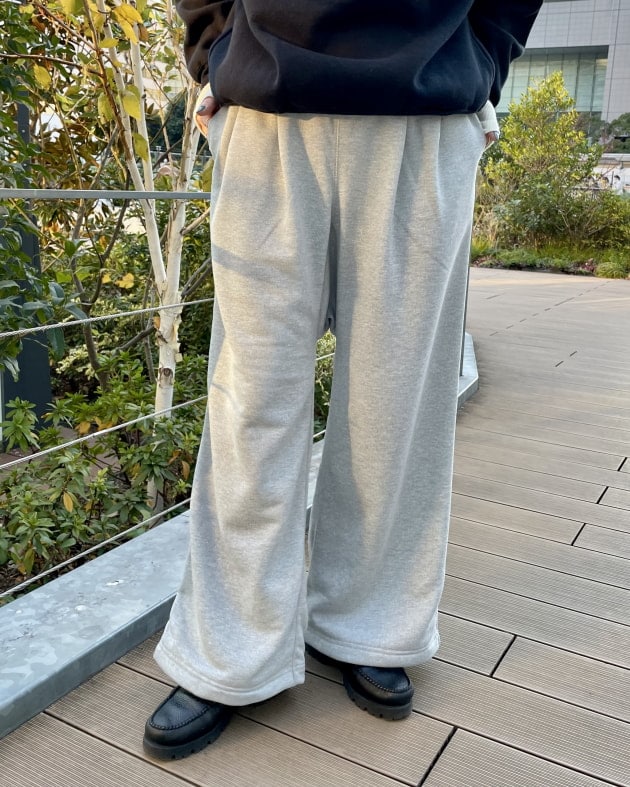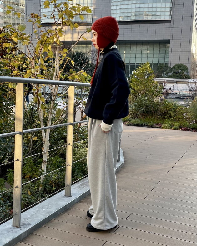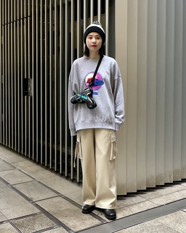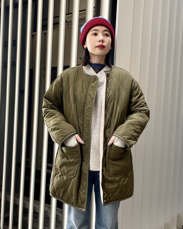 ゆったりとしたサイズ感なので、厚手のニットやスウェットも余裕で着込めます。
