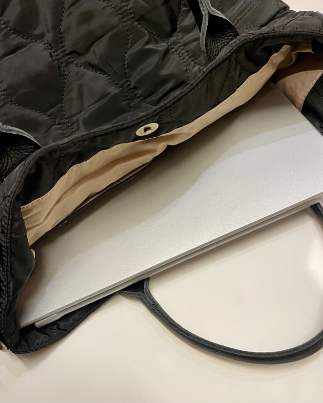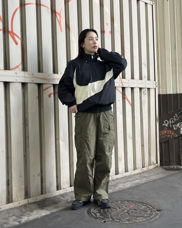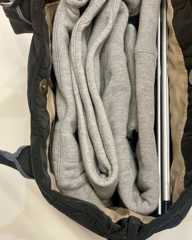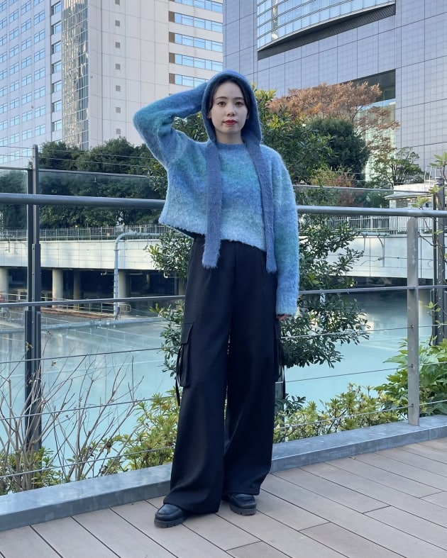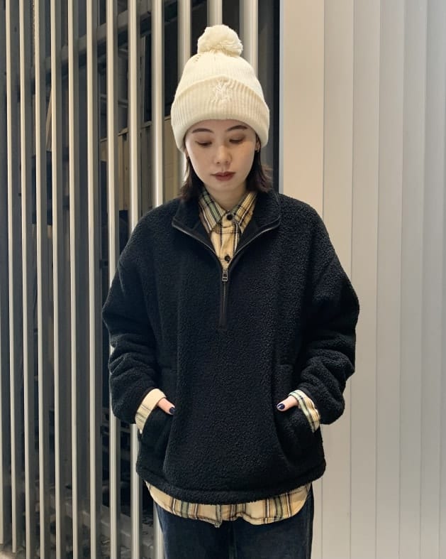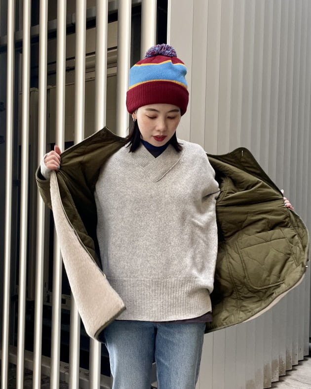 ゆったりとしたサイズ感なので、厚手のニットやスウェットも余裕で着込めます。