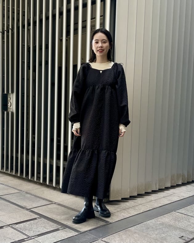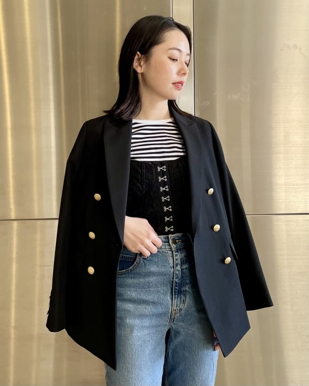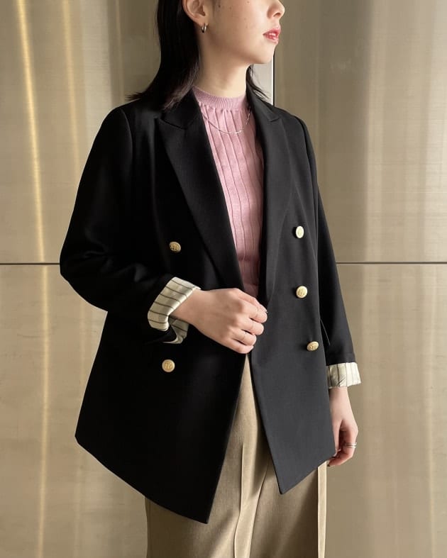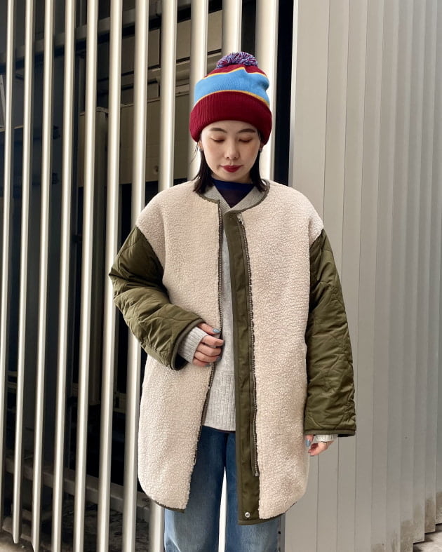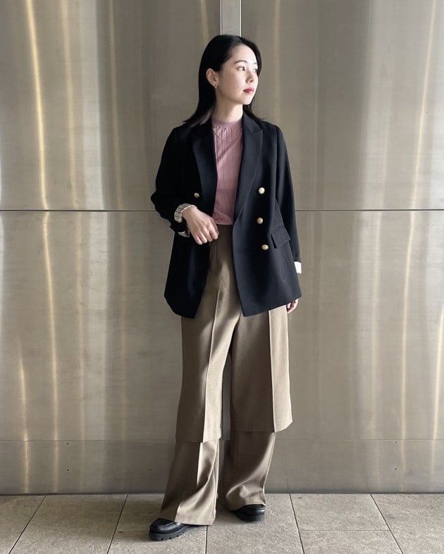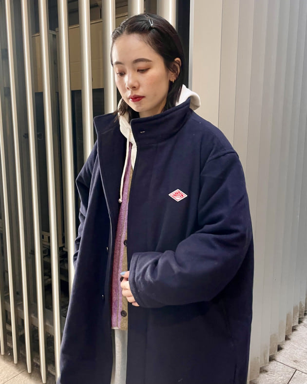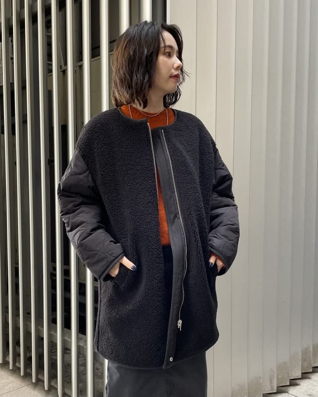 先程のスタンドカラーコートに比べると、そこまでゆったり感はないかもしれません。