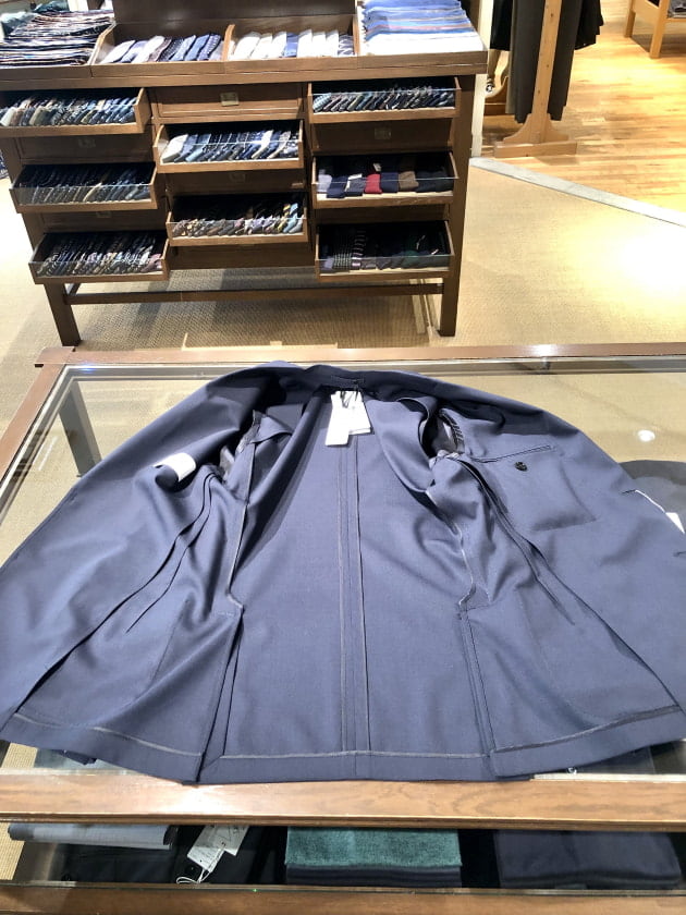 このように裏地はありませんが、袖裏はしっかりとありますのでシャツ合わせも可能です。