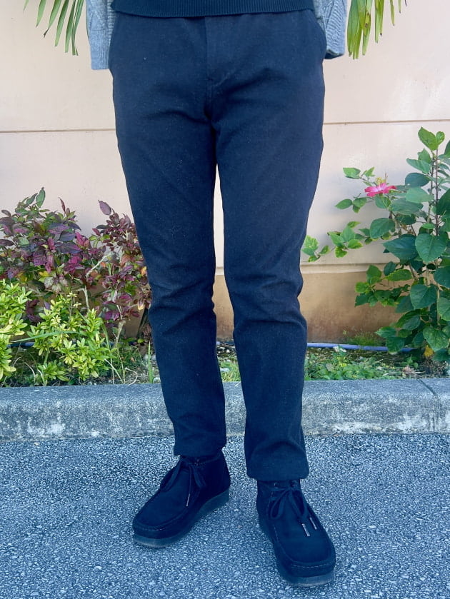 スラックスのような雰囲気も出せるのでキレイめコーデにも◎