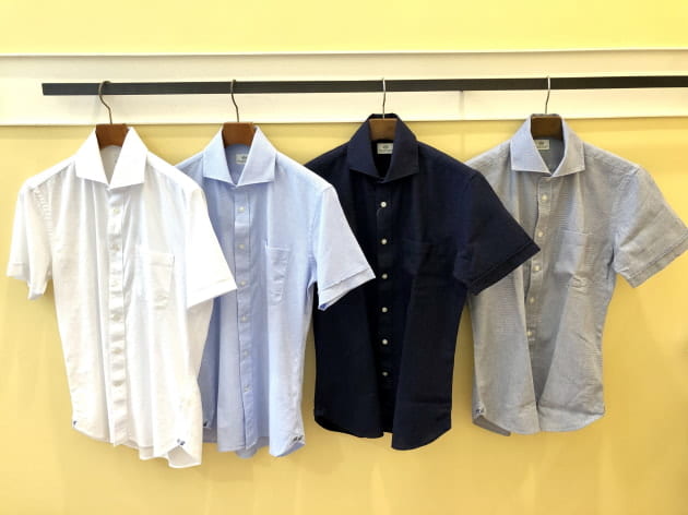 通気性の良いカラミ織り素材を使用したカッタウェイカラーシャツになります♪
