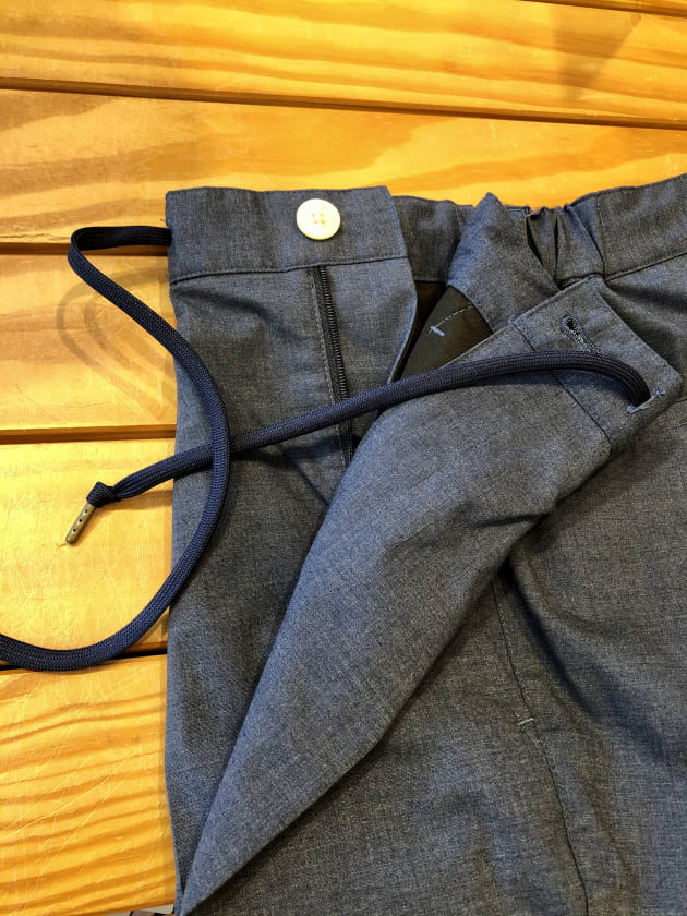 コットンポリエステルのシャンブレー素材を使用したイージースラックス♪