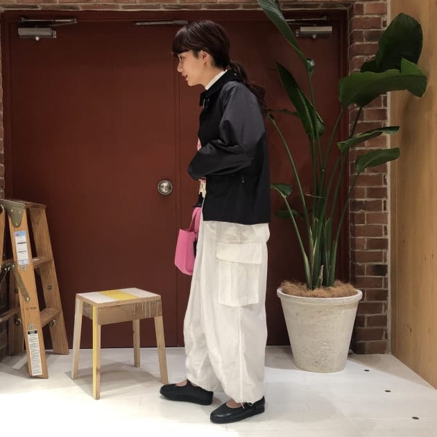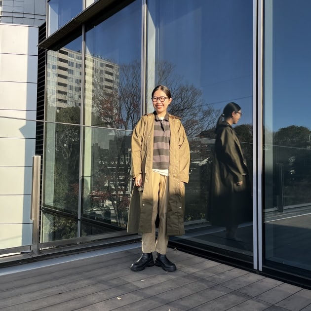 メンズライクな見た目ですが、着用すると女性らしいAラインのシルエットになるのがオススメ。