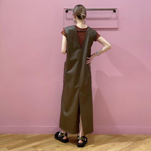 Ray BEAMS / フェイクレザー Vネック ノースリーブ ワンピース