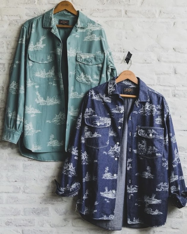 ワークシャツに風景画を抜染でうまく表現したアイテム!!