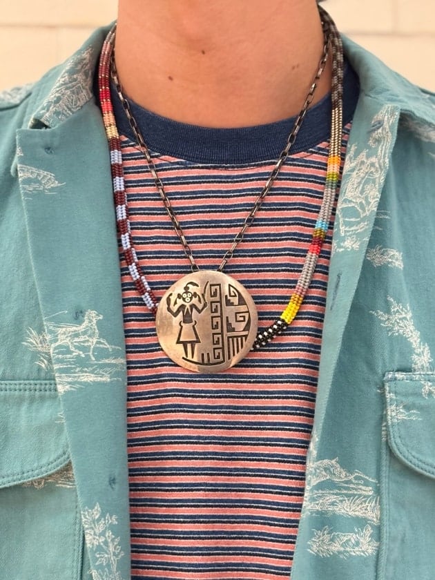 胸元にはネイティブなアクセサリーを添えて、、◎●