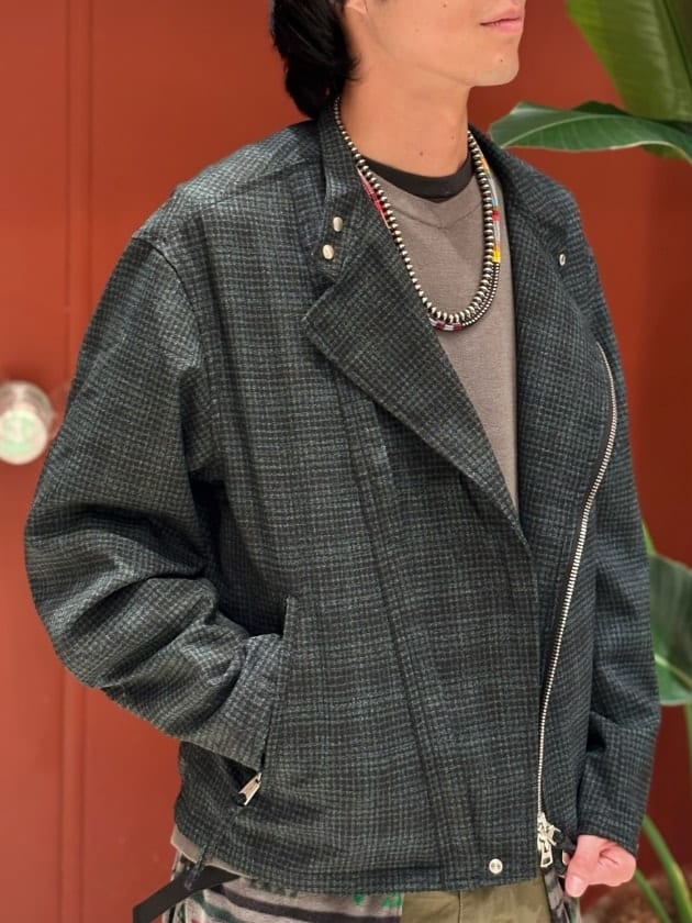 ナイロン素材の変化球ライダースジャケットを選定◎