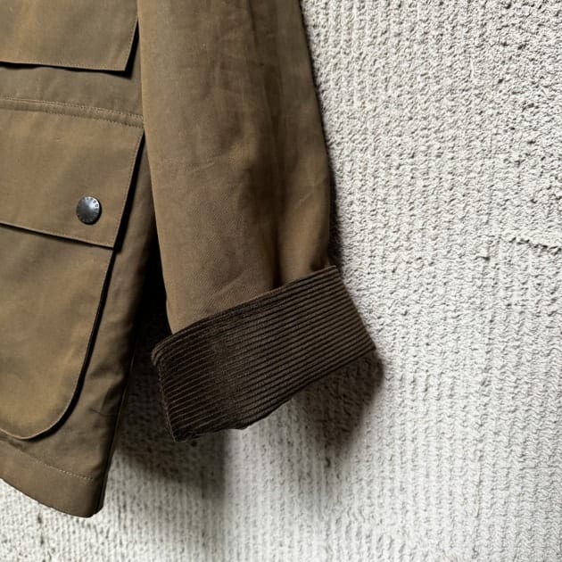 クラシックな〈Barbour〉のディテールが、上品なムードを引き上げてくれます。