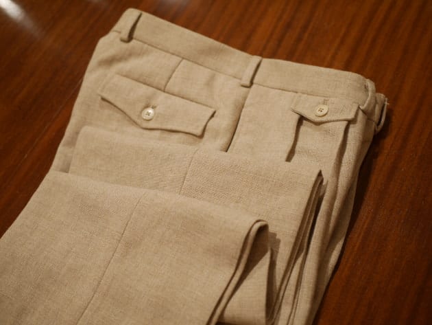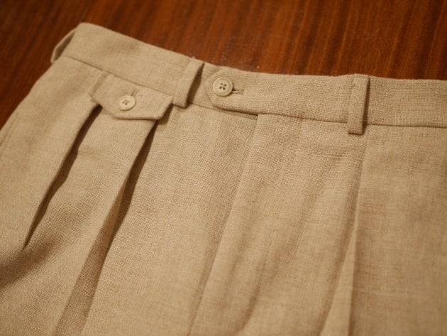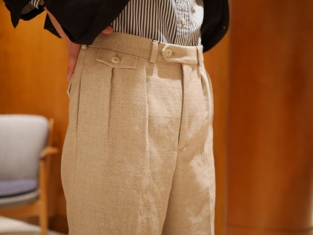BERNARD ZINS / 別注 リネングレンプレイド 2プリーツ サイドアジャスタースラックス