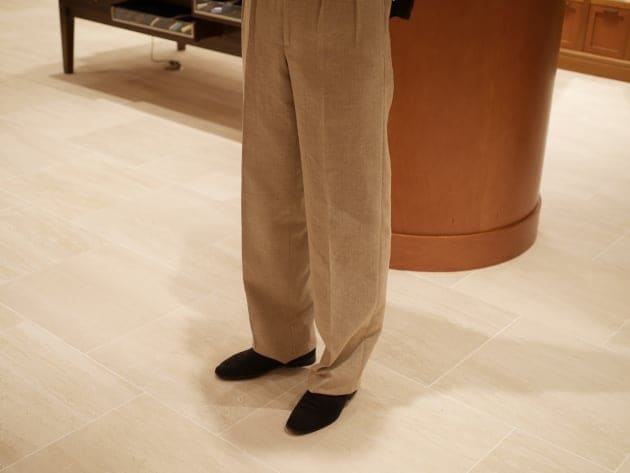 リネンパンツの様な風合いに合わせて、グルカサンダルを合わせても良いですね。