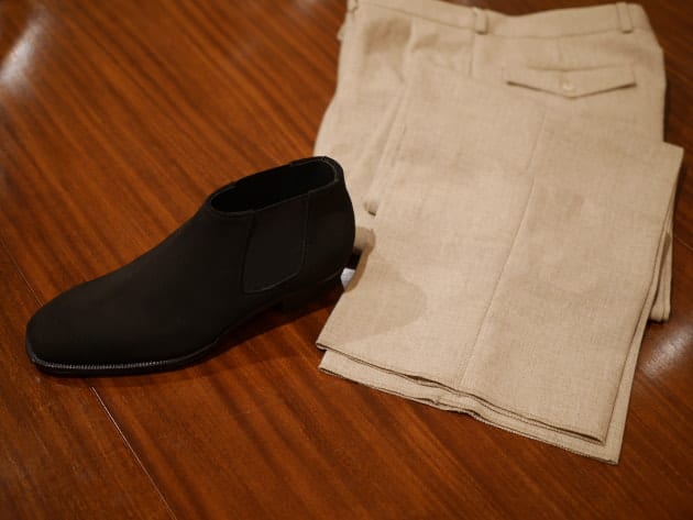裾はシングルで仕上げて、スポーティなサイドゴアシューズもオススメ。