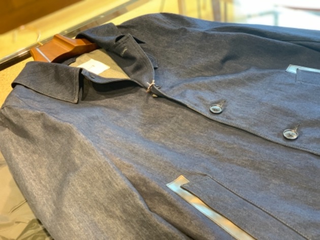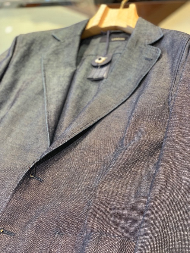 <LARDINI>からデニムのシャツジャケットです。シャツジャケットの類ですがジャケットに近い立体的な作りです。麻が入り少し生地が薄いですが秋口までなんなく使えそうな厚さなのでこちらも万能アイテムとしてチョイスいたしました。