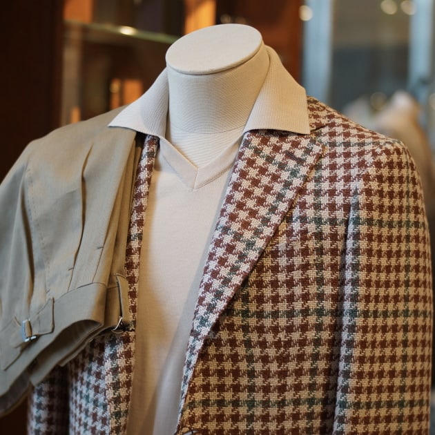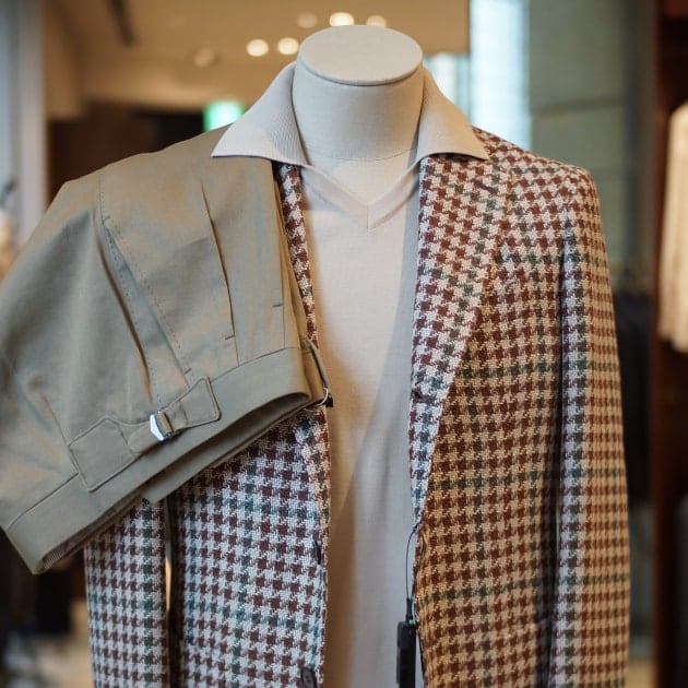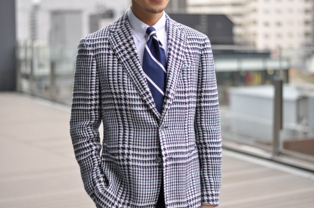 大柄のグレンプレイドに青いペーン。非常に洒落てます。そしてこの見るからに柔らかな仕立て。