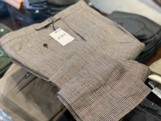 そこに細かい柄のチェックパンツを合わせました。