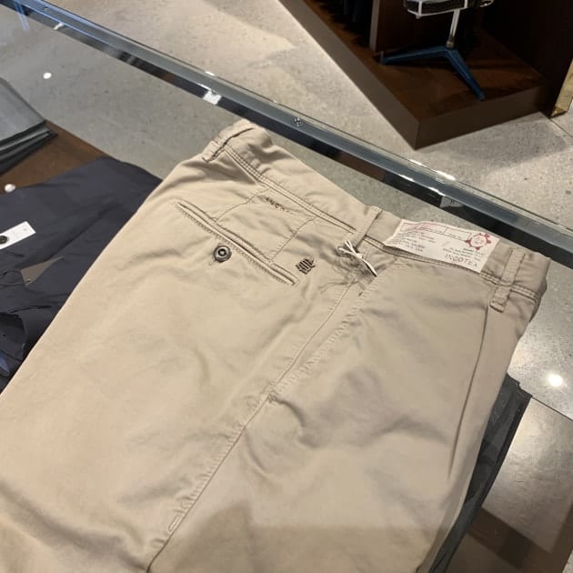 シャツは白だとパキッとしすぎかなと思いブルーをチョイス。