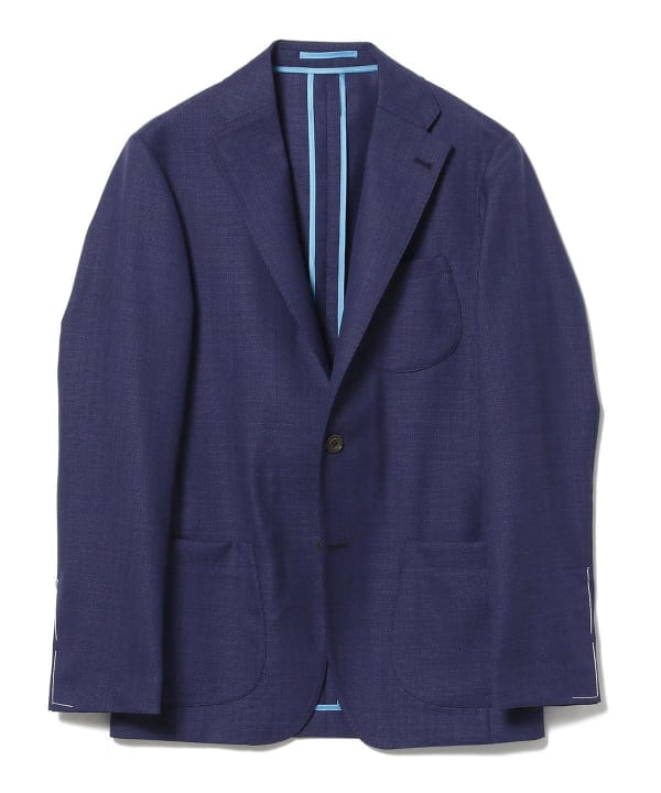大山はブルーをカチッと仕上げて来ました。裏地を用いないジャケットはスポーティな印象になりがちですがパターンが立体的なので軽くなりすぎない所もいいですね。