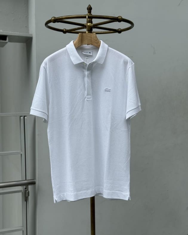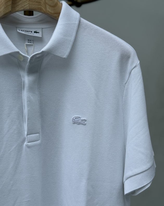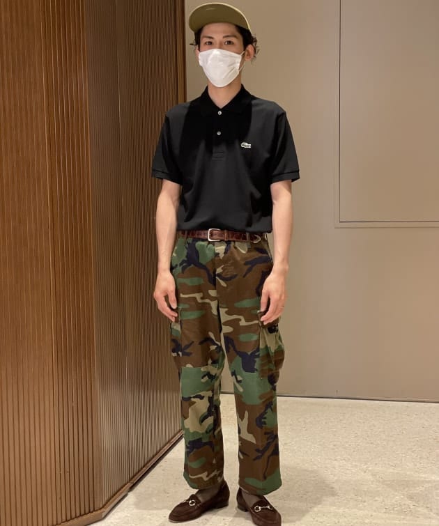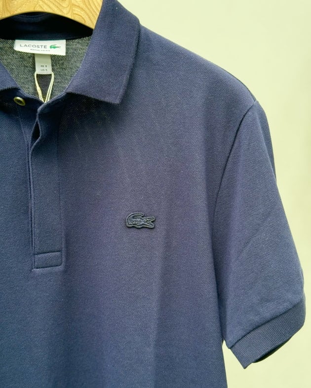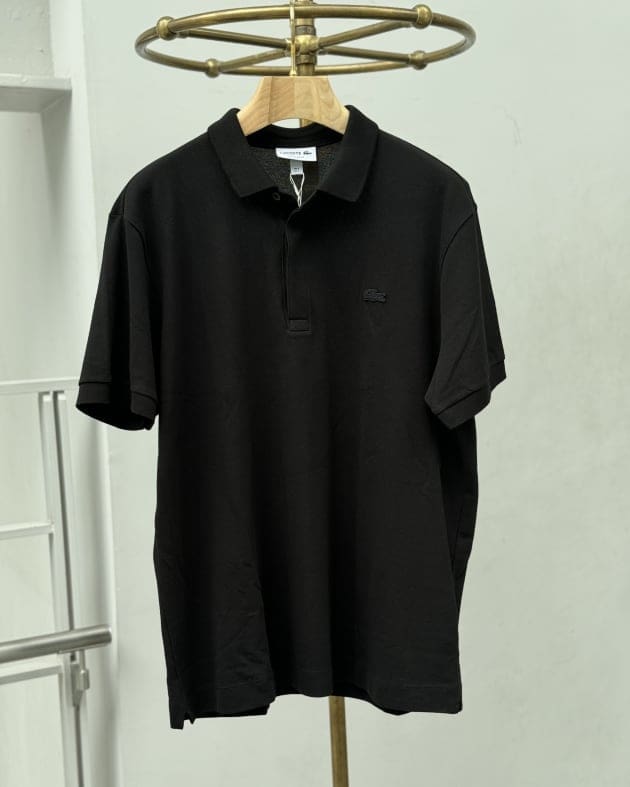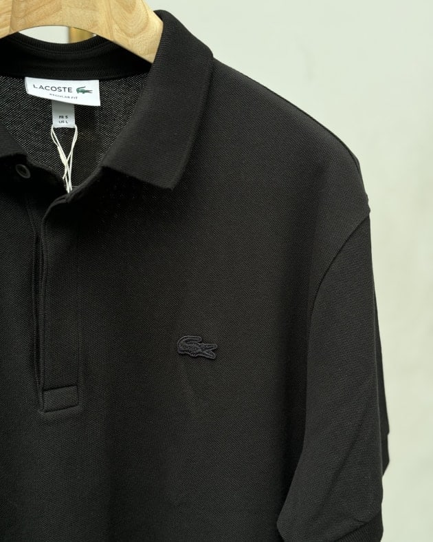 ブラックの半袖ポロシャツは<LACOSTE>のL1212。