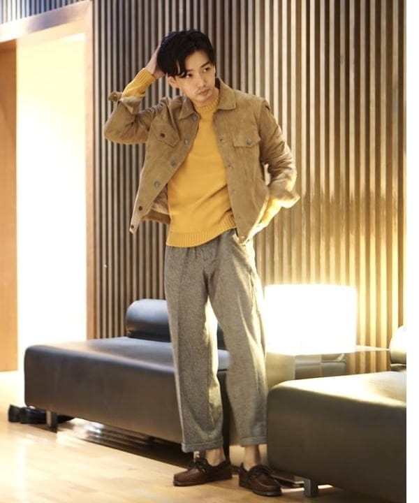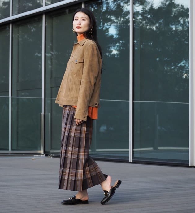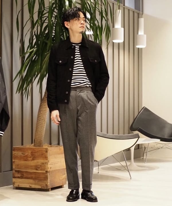 シャツ×ワイドパンツにコートというマスキュリンなコーディネート。