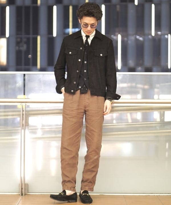 ベルトはウエストマークしてバランスよく。