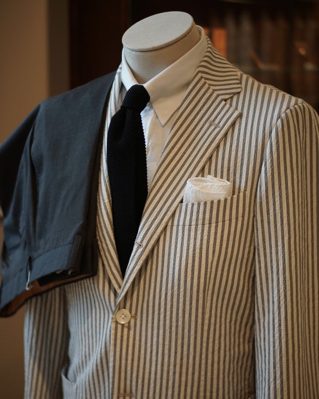 <De Petrillo>のリネンスーツをタイドアップしたカジュアルスーチング。