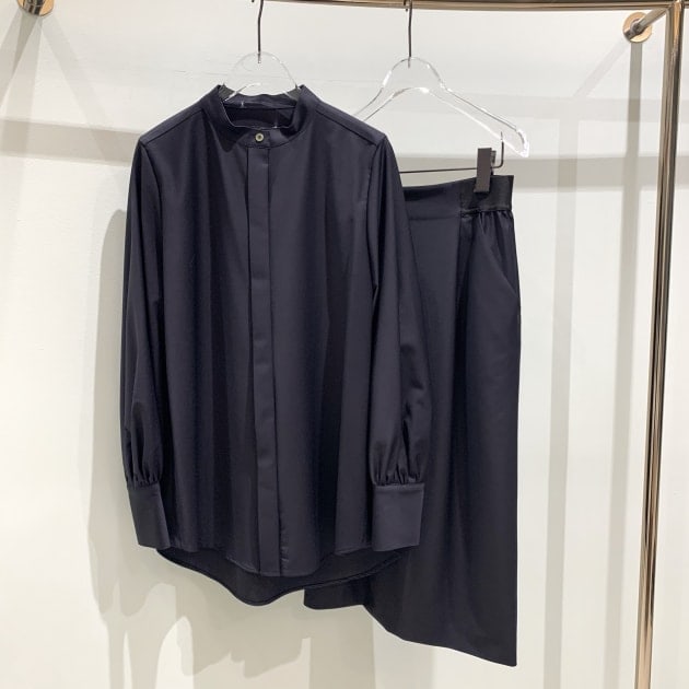 艶のある滑らかな生地感なのでブラックをセットアップで着用しても重たい印象になりません。