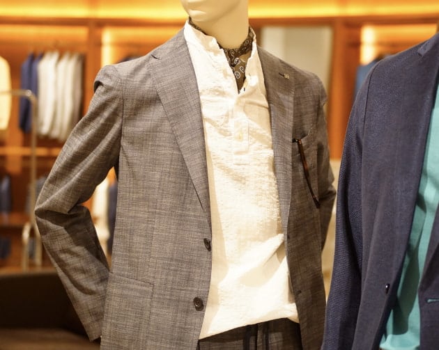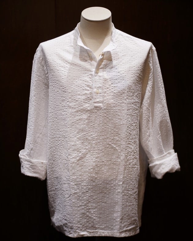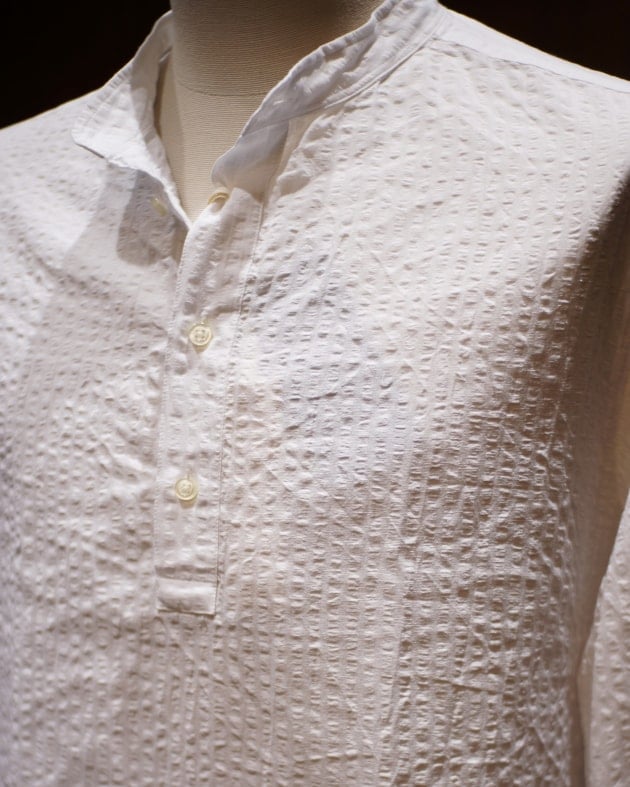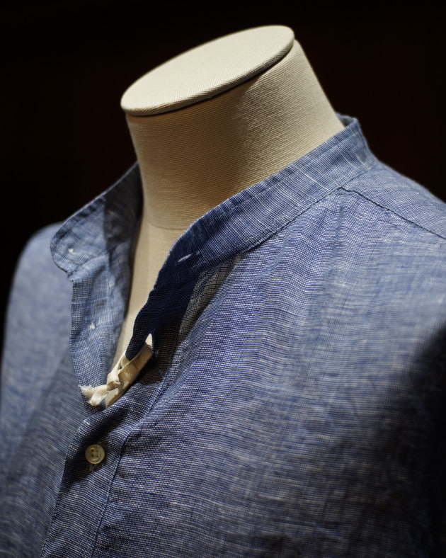 今回紹介のアイテムはプルオーバータイプ。フロントボタンを少し開けたルーズな着こなしも◎リネン素材の軽さとブルーのラインが爽やかさを加速させてくれます。良いチェックですね
