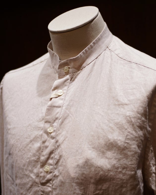 GUY ROVER × Brilla per il gusto / 別注 リネン ブルーチェック バンドカラー プルオーバーシャツ