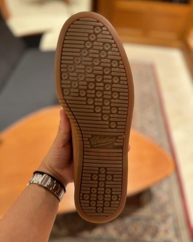 通常パラブーツのメンズローファーは手束の履いている【REIMS(ランス)】になるのですが、こちらはレディースローファーの木型【ORSAY(オルセー)】で別注されたモデルだそうです。