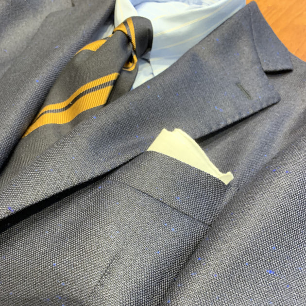 ネイビーにブルーのカラーネップが入っていて、シンプルながらも個性が演出出来る生地