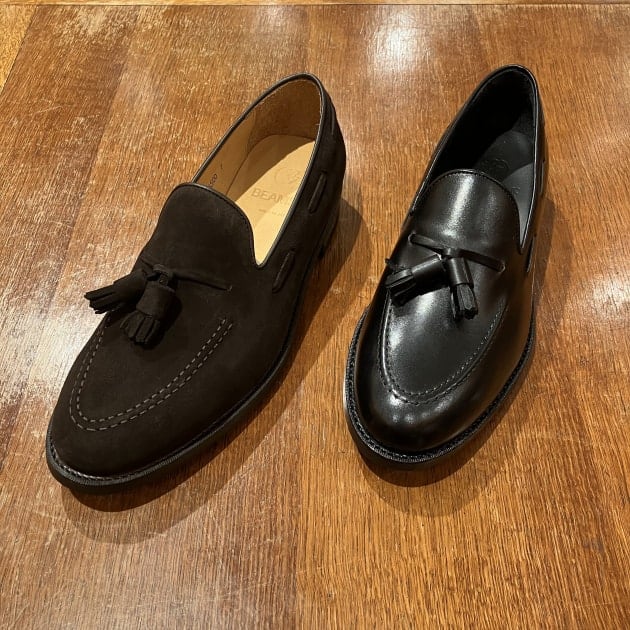 紐靴では少々堅い気がするのでタッセルローファーがちょうど良いかと思います。今回はシンプルなコーディネートなので穴飾りのあるタッセルローファーをチョイスしました。