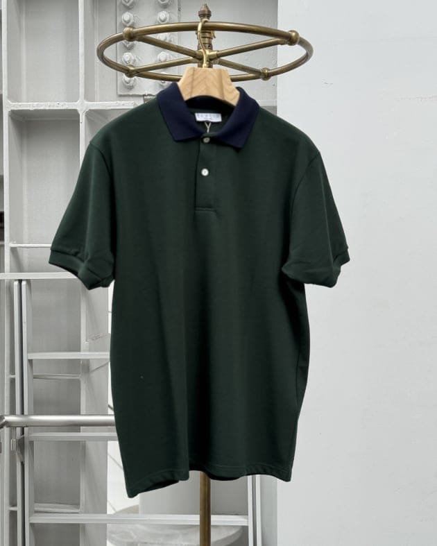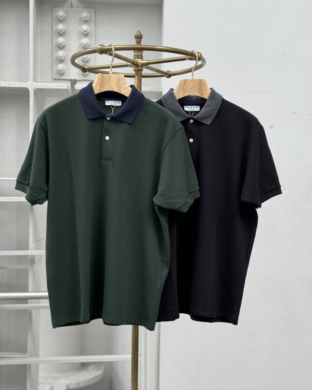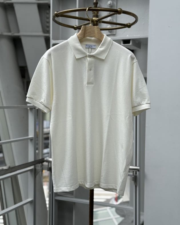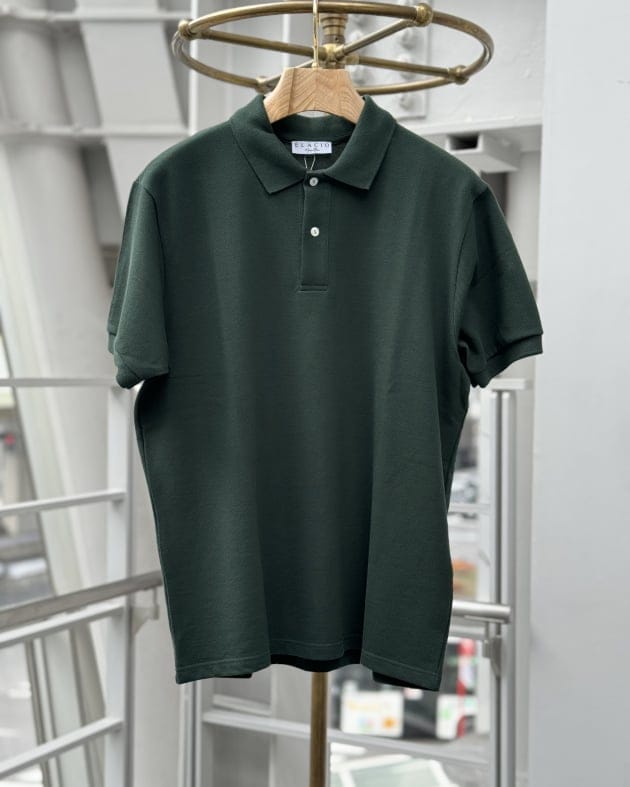 クールビズでしたら、やはりインナーは襟付きの方が締まる…という場合は、<ELACIO>のカノコポロシャツをイン。