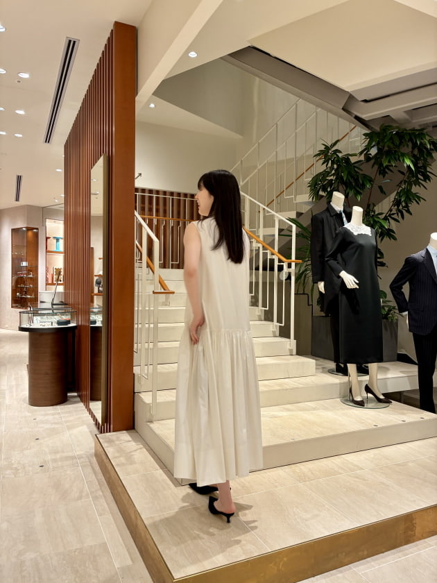 サイズは少し大きめで丈が長いので、ドレッシーな雰囲気で着用していただけます。