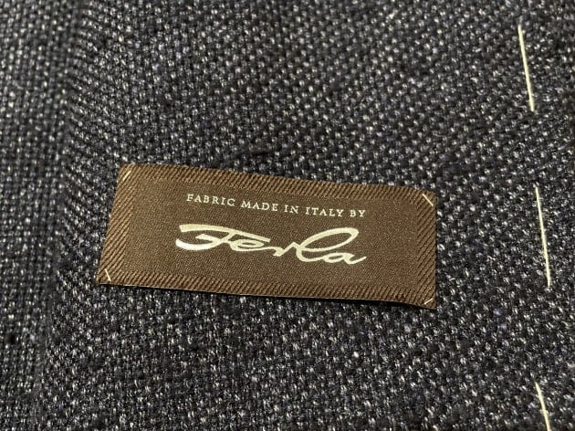 今回はブラックでご用意。ウール99%ポリウレタン1%のサキソニー生地です。