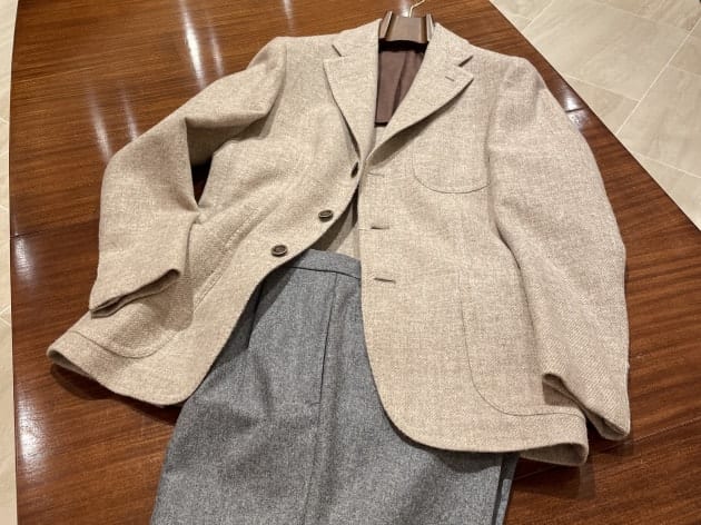 前回の秋冬はネイビーをウール100%でご用意しましたが、今回はポリウレタン素材が混ざっている為、"見た目以上に伸びる"と感じました!