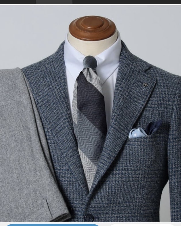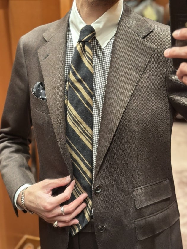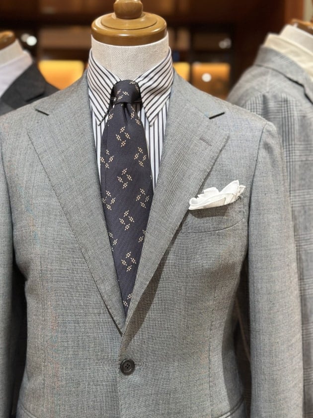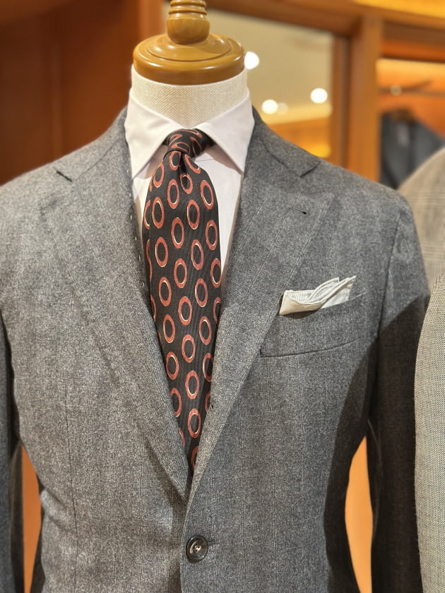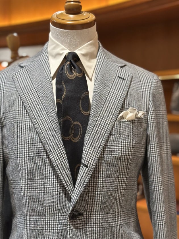 柄サイズも含めて、ネクタイコーディネートや、ニットの合わせどちらも楽しんで頂けそうです。