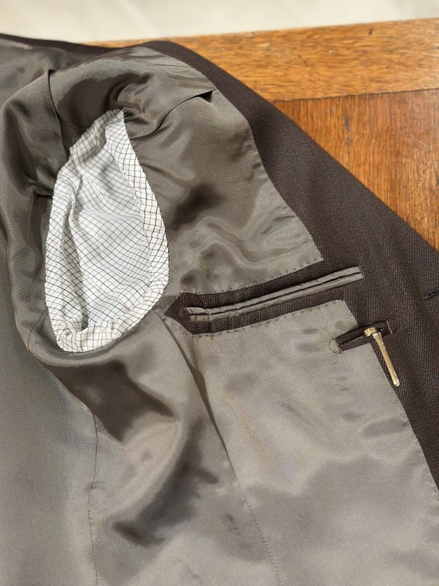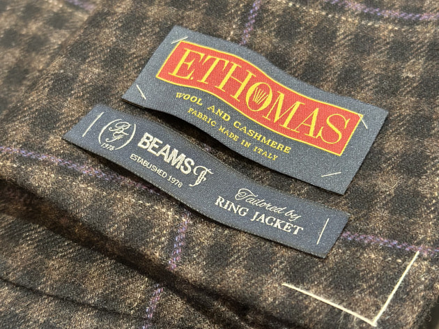 くすんだカラーで構成されたグレンチェック。オリーブグリーンや、ブラウンの糸も使用されています。