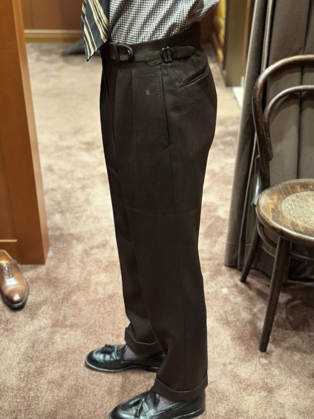 【別注】MASSIMO CORRADO / ウールサキソニー 2プリーツ サイドアジャスター スラックス