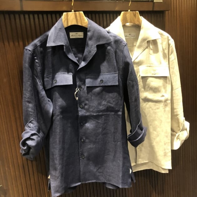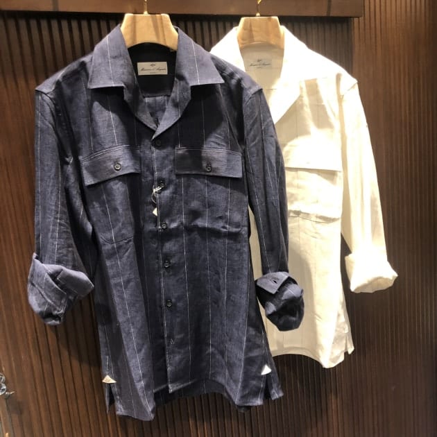 サラッとしたポプリン生地にサファリ風の色合い、まさにドレスダウンするにはもってこいな男前のシャツではないでしょうか?