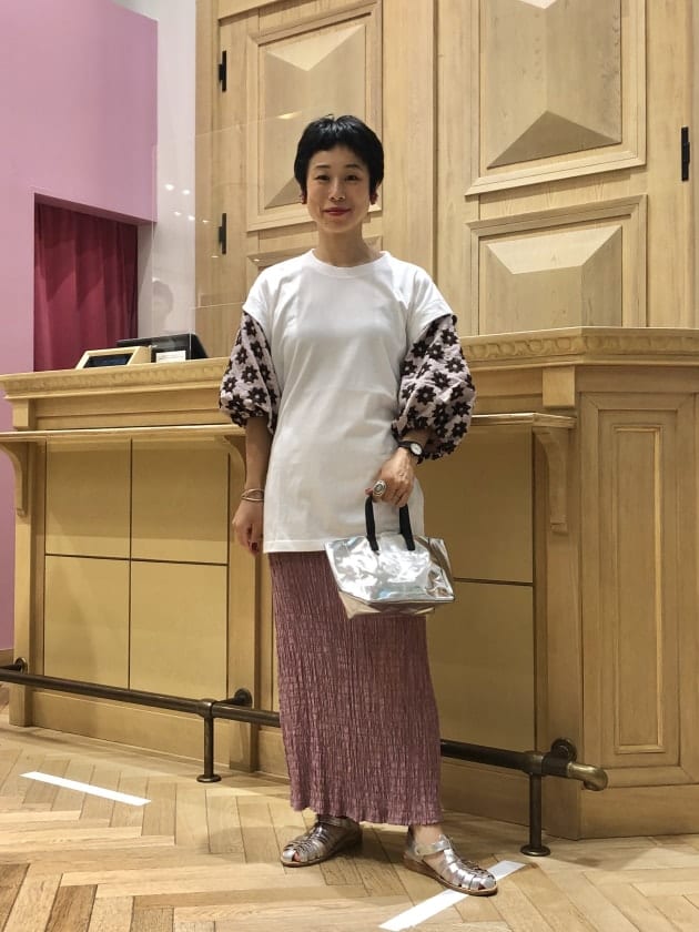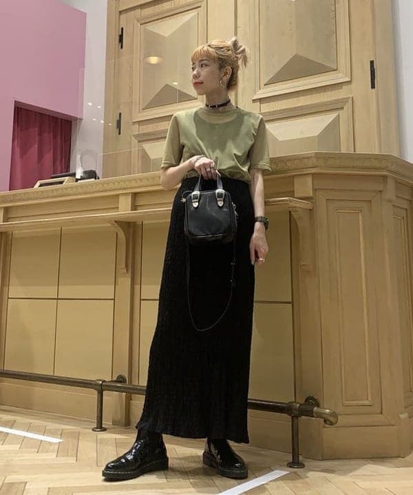 ボリュームたっぷりなのでトップスは着丈が短めのものまたはピタッとしたものがおすすめ〜