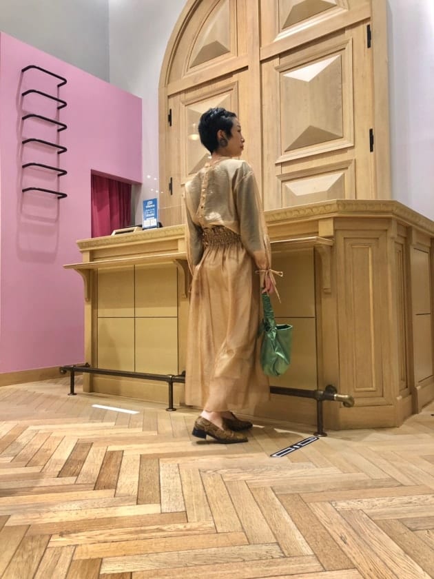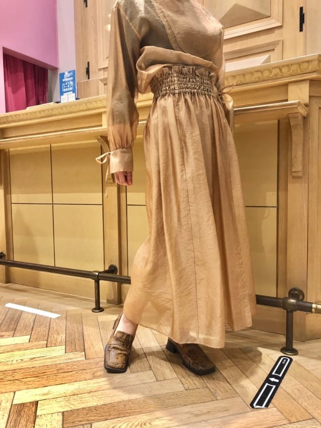 軽く柔らかい質感で上品な透け感と光沢感のある素材なので、普段のスタイルに取り入れやすいかと思います。