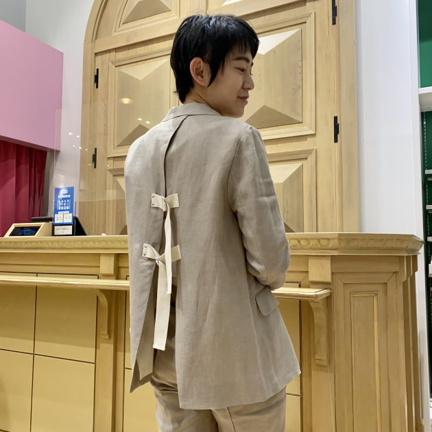 ジャケットの後ろは、こんな感じでベルトがついており素肌をチラッと見せて頂くことも…!