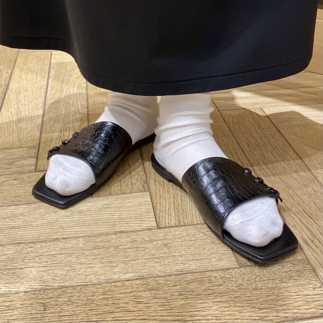 サンダルなので、もちろん裸足で履くのも可愛いですが今時期でしたら靴下と合わせても良いです◎