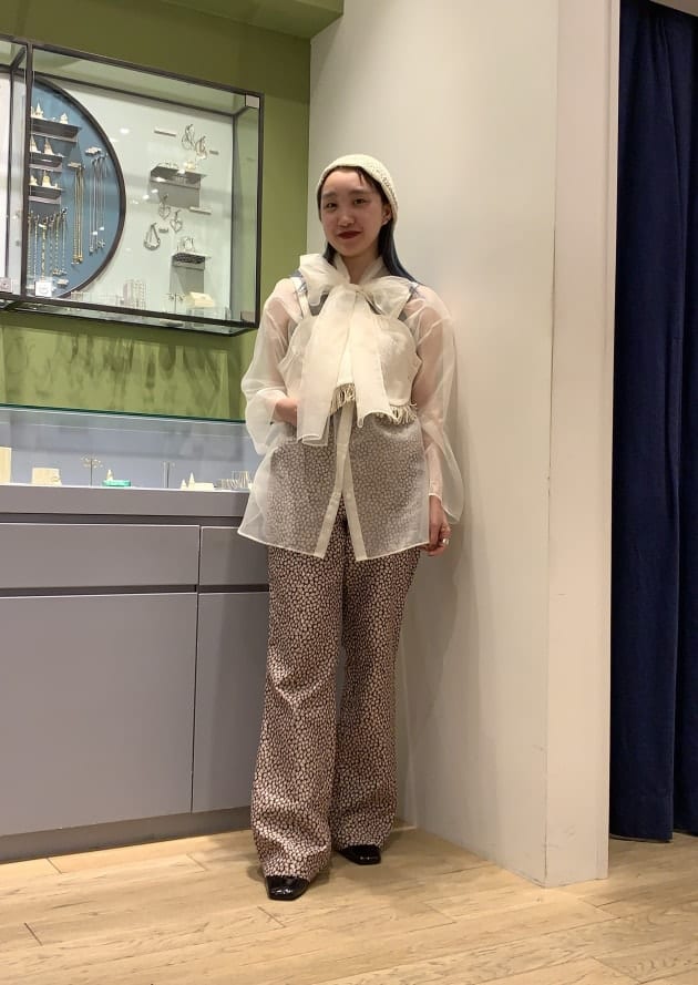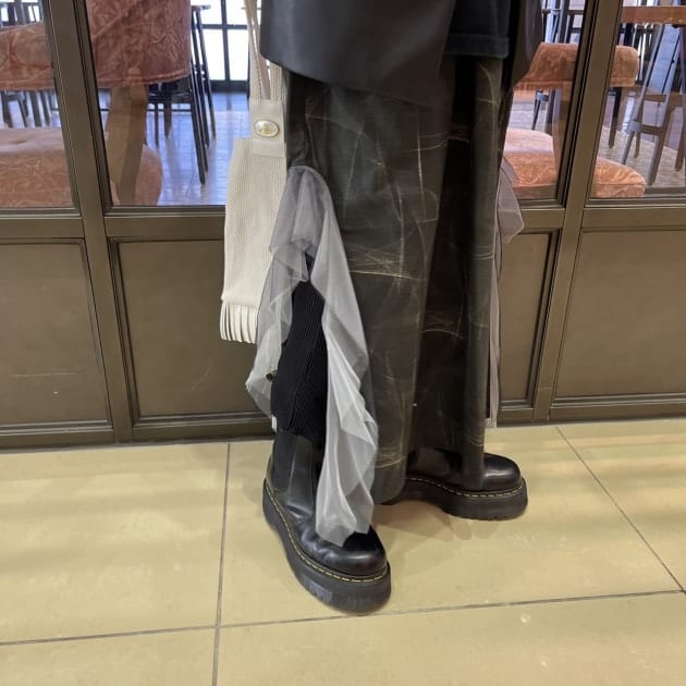 モードな柄に対してスリットにフリルのチュールが施されているんです〜