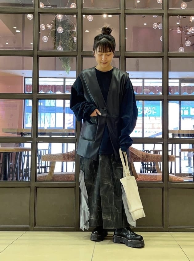 こんな風にブラックを基調としてメンズライクなアイテムと合わせているスタイリングとっても好みでした♡