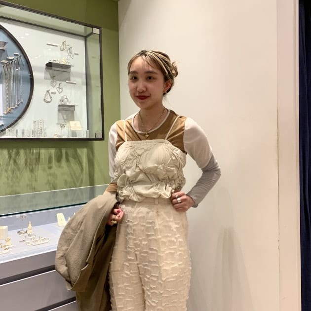 ビスチェのように着ているのはカップ付きのシャーリングキャミソールでカップを取ってレイヤードで使っても可愛かったです◎