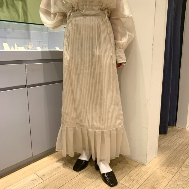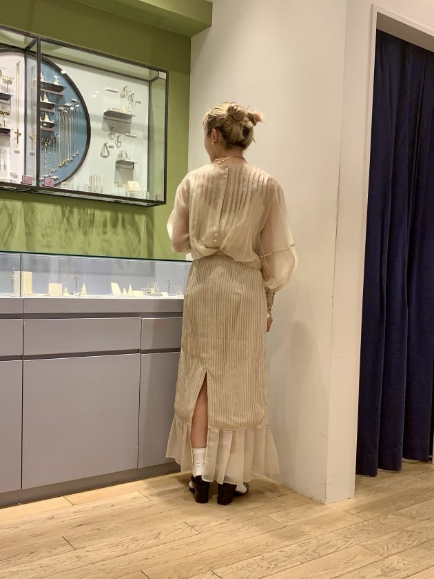 スカートも細かいピンタックが効いていてこだわりのディティールとなっております◎