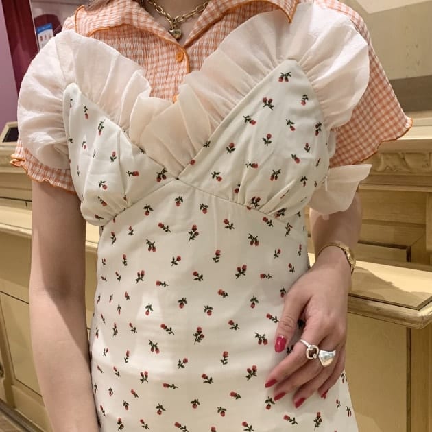 ローズ柄にフリル